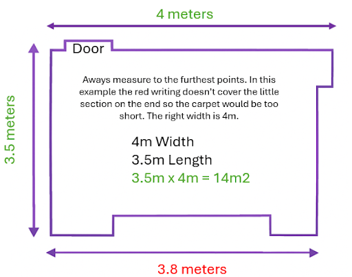 Always add up to 10 cm (4 inches) to both the length and width. This extra material allows your fitter to trim the carpet neatly and handle any slight irregularities in the walls.